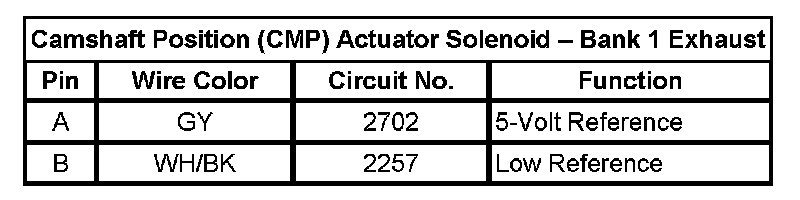 Position (CMP) Actuator Solenoid - Bank 1 Exhaust