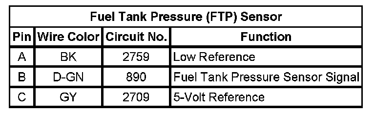 Fuel Tank Pressure Sensor: Diagrams