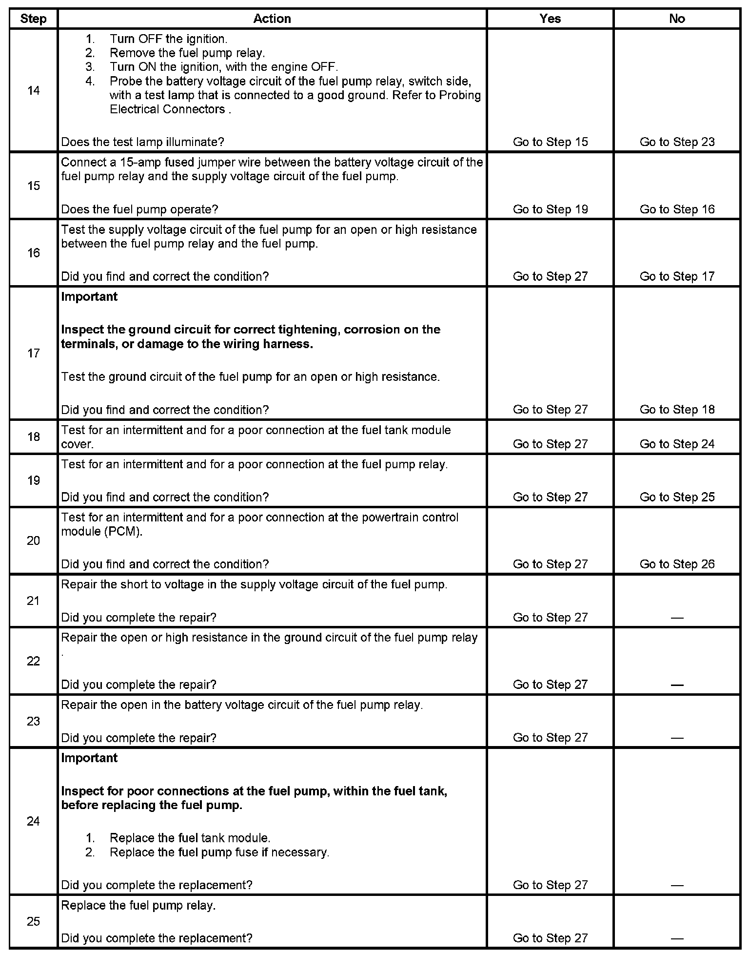 Fuel Pump Electrical Circuit Diagnosis