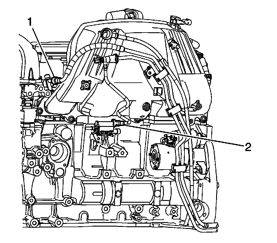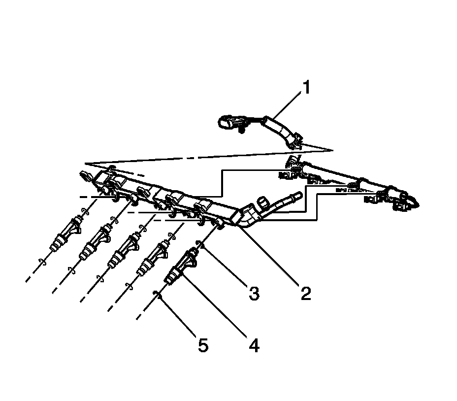 1. Remove the fuel injector harness clips from the fuel rail and remove the harness (1).