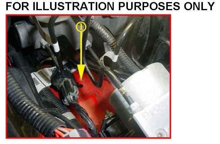 The figure above shows the location of the connector. Note that the connector rosebud (1) is out of place. In most cases, the connector will be partially seated, causing a possible interaction between the connector and the ABS brake line.