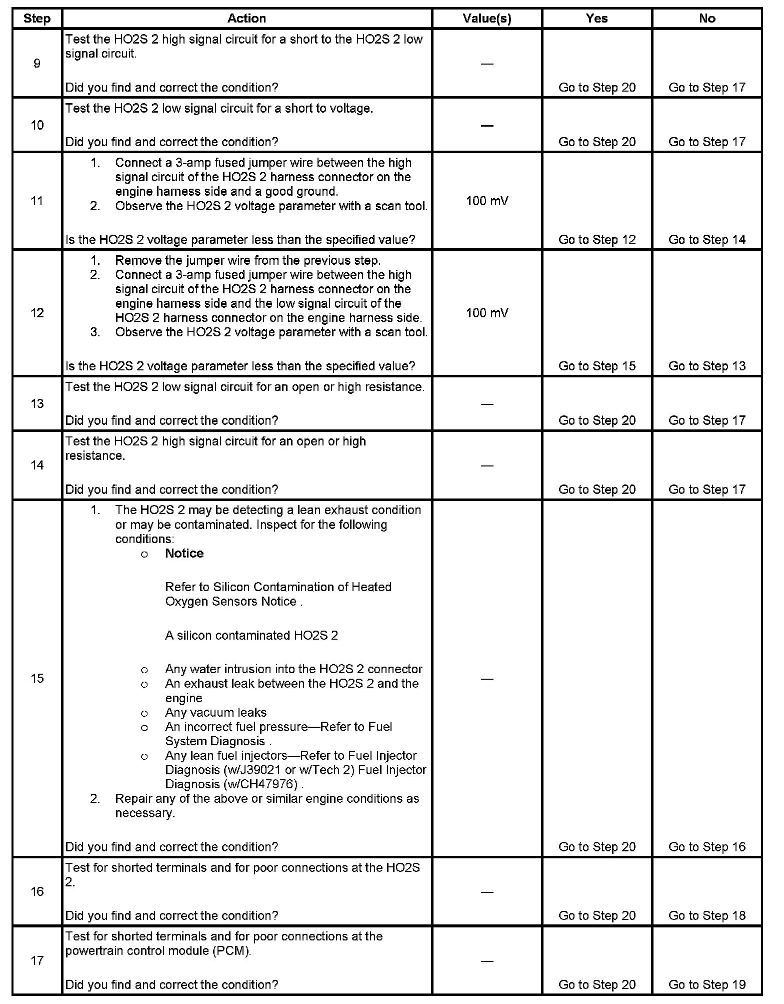* The PCM detects that the HO2S 2 voltage parameter is less than 50 mV.