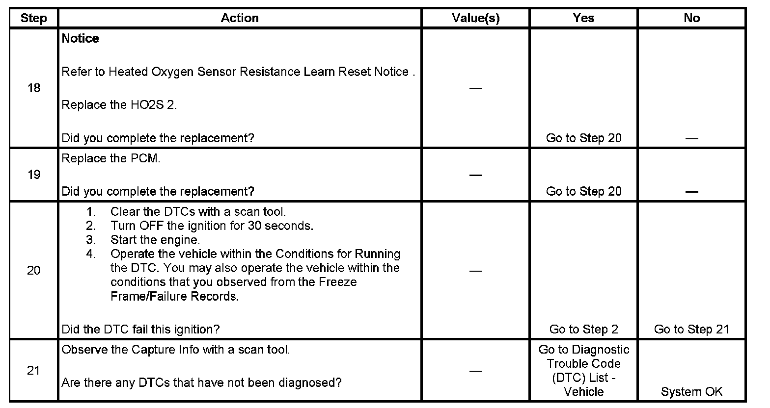 * The PCM detects that the HO2S 2 voltage parameter is less than 550 mV and the HO2S 1 parameter is more than 700 mV.