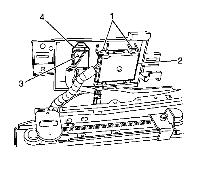 4. Release the tabs (4) that retain the seat switch (3) to the seat bezel.
