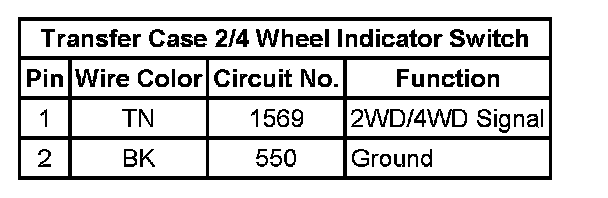 Transfer Case 2/4 Wheel Indicator Switch: