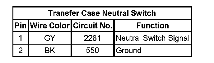 Transfer Case Neutral Switch: