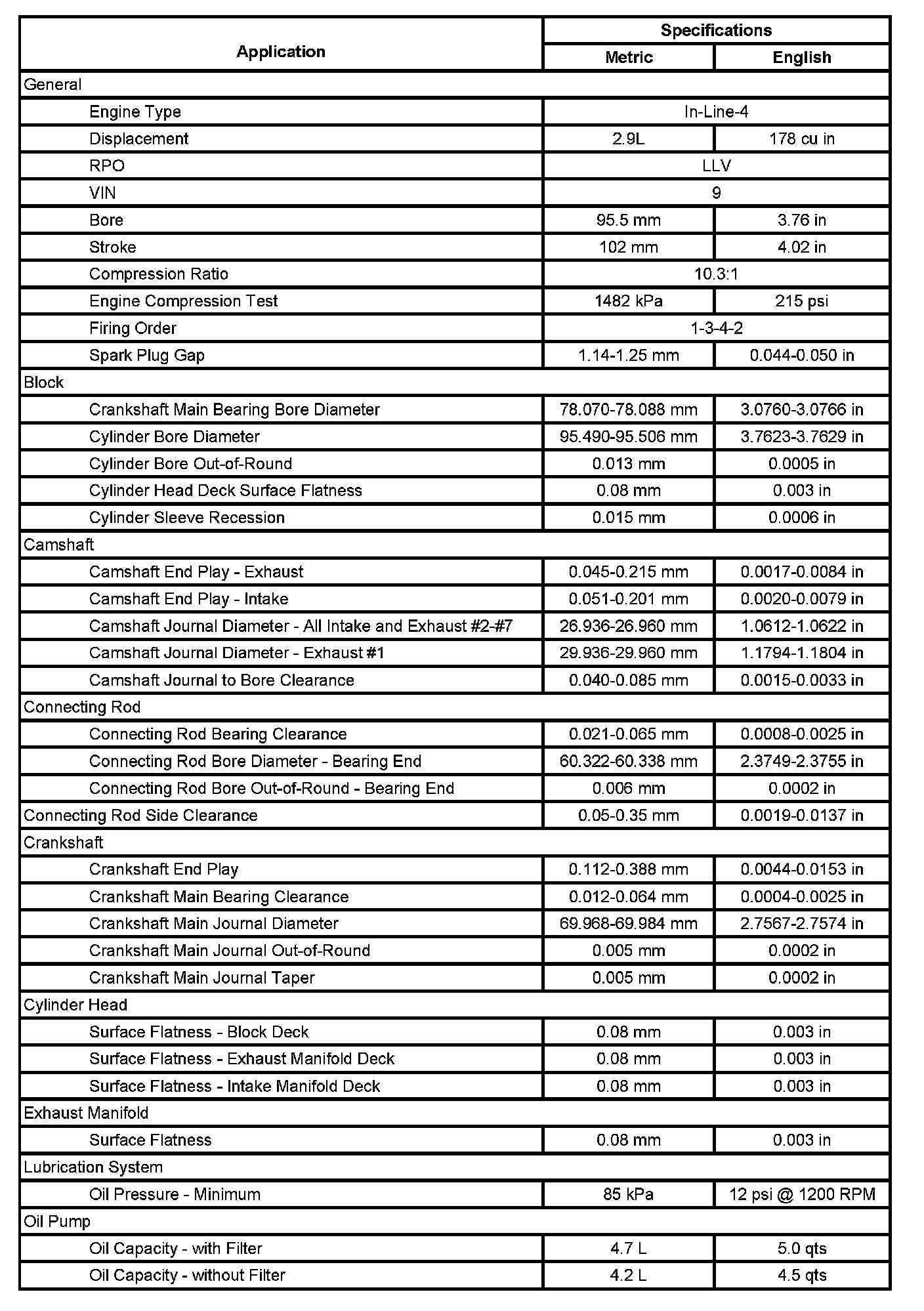 Engine Mechanical Specifications