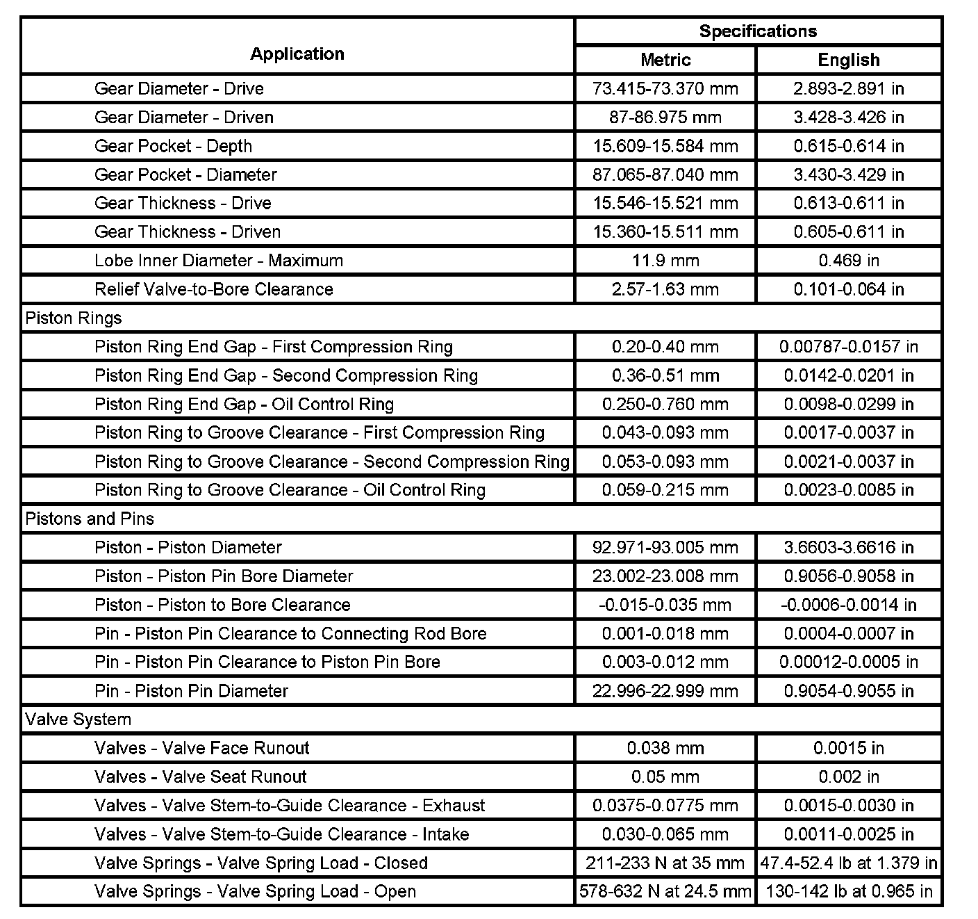 Engine Mechanical Specifications (Part 2):