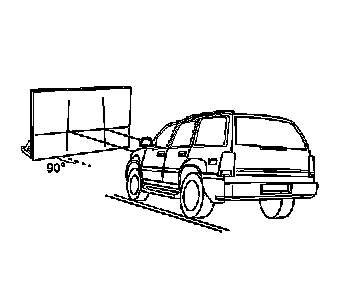 1. Align the left tires of the vehicle with the reference line extending from the screen with the headlamps aligned with the reference line.