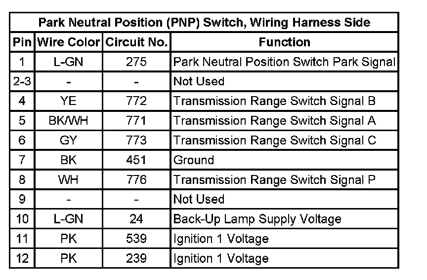 Park Neutral Position (PNP) Switch, Wiring Harness Side: