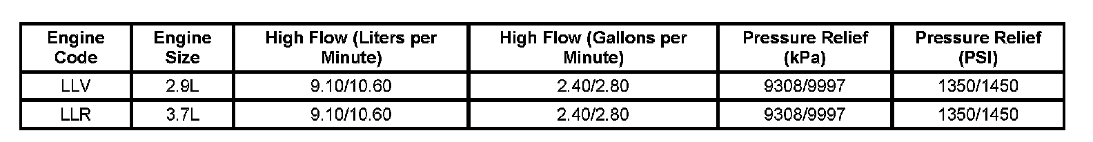 Power Steering Pump Specifications: