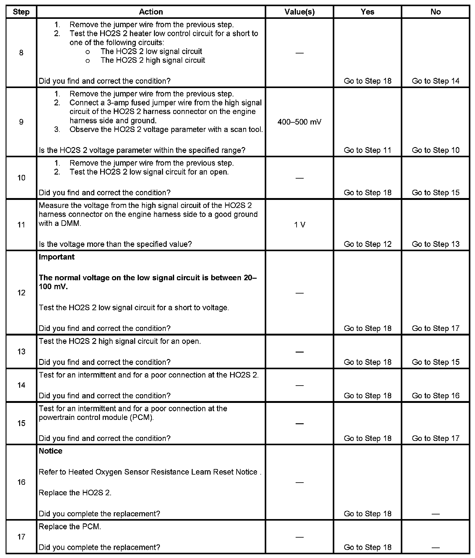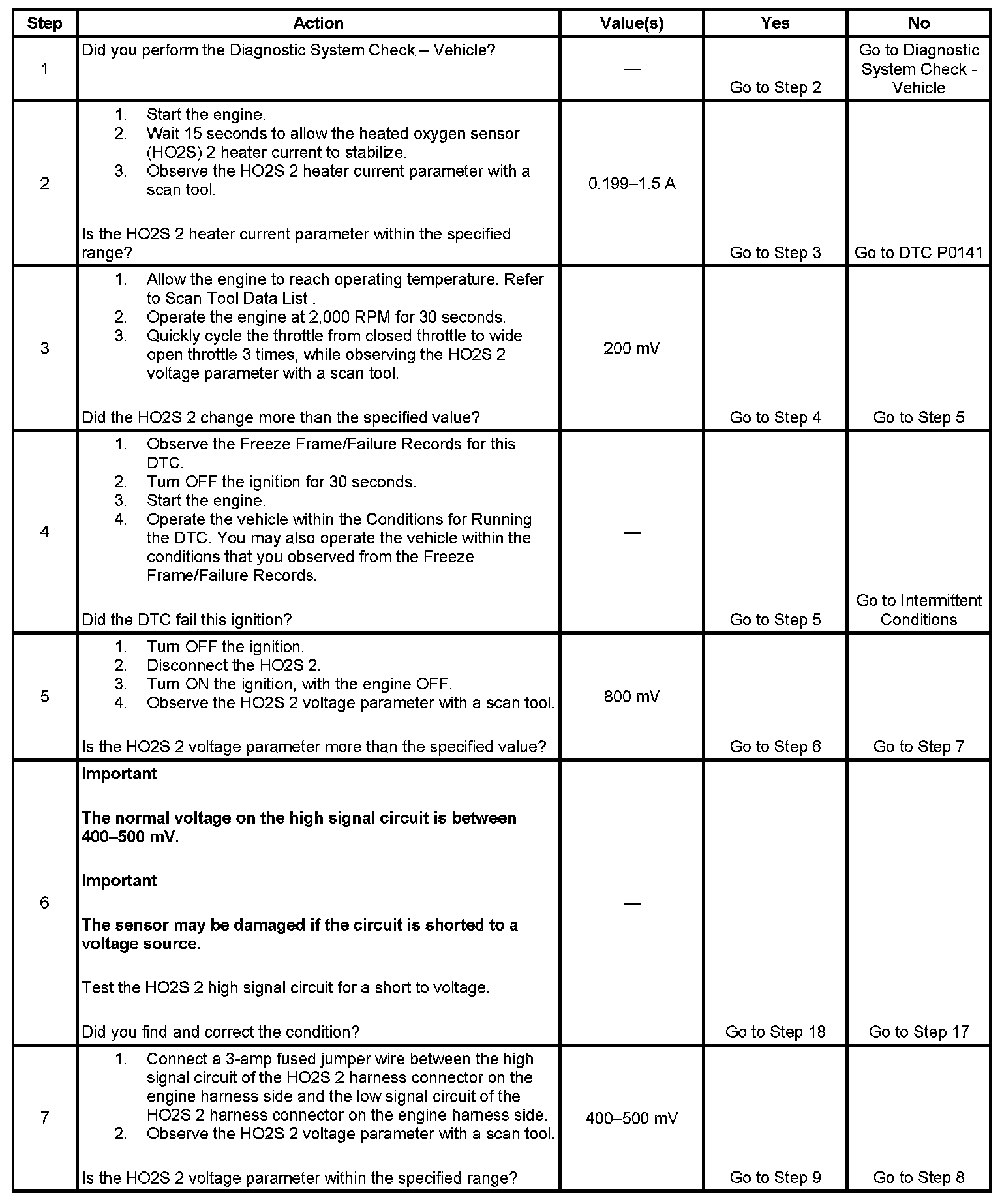 If the PCM detects that the HO2S voltage remains within the bias voltage range, DTC P0140 will set.