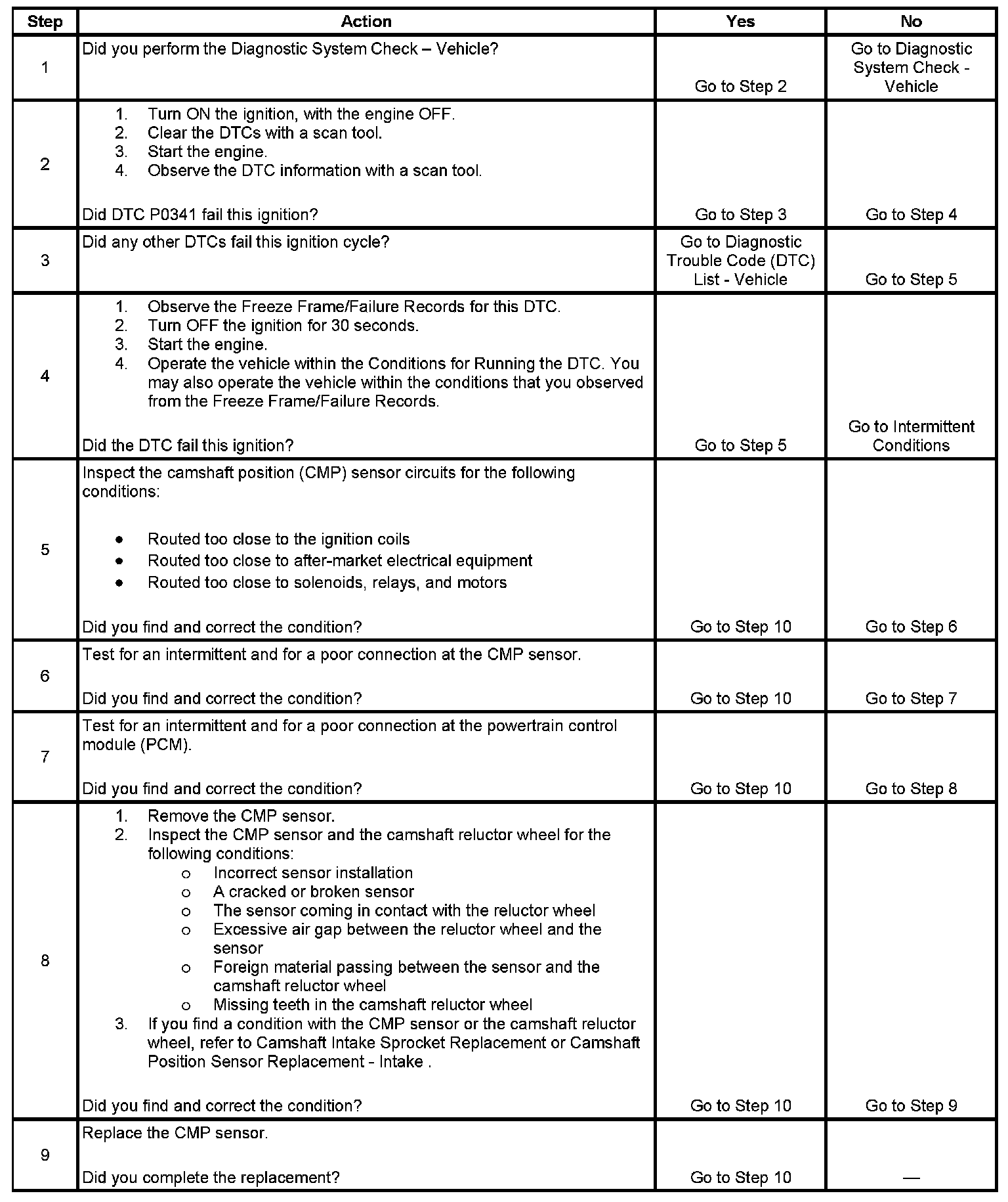 If the PCM receives an incorrect number of CMP sensor pulses in a given number of CKP sensor pulses, DTC P0341 will set.