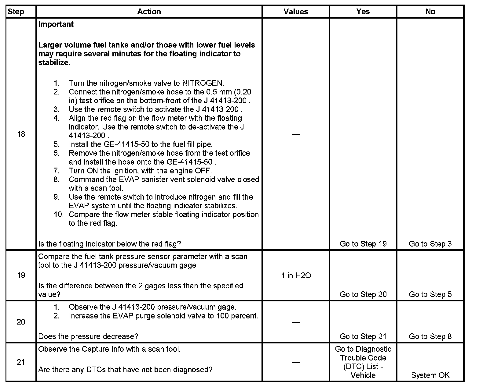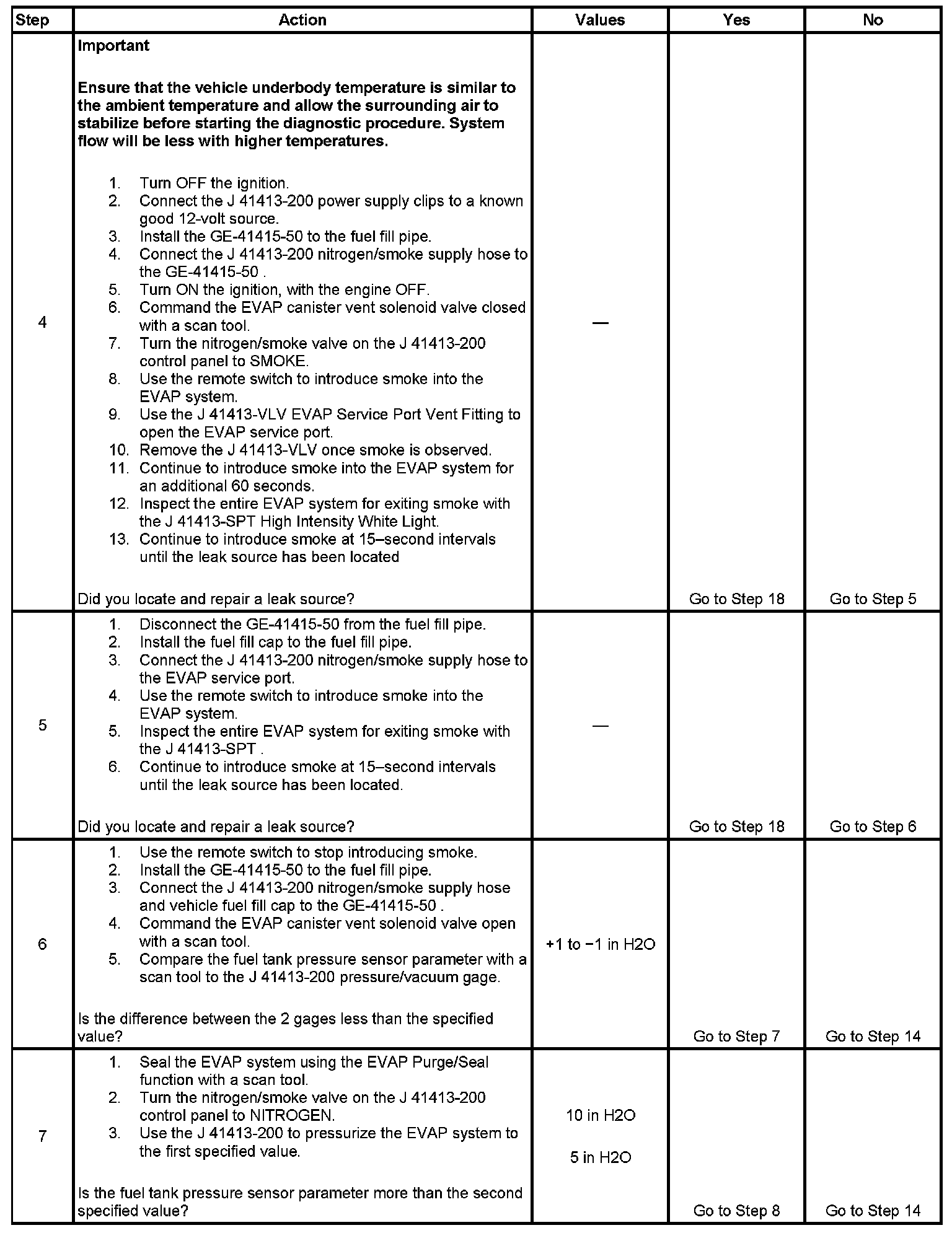* To help locate intermittent leaks, use the J 41413-200 Evaporative Emissions System Tester (EEST) to introduce smoke into the EVAP system. Move all EVAP components while observing smoke with the J 41413-SPT High Intensity White Light. Introducing smoke in 15-second intervals will allow less pressure into the EVAP system. When the system is less pressurized, the smoke will sometimes escape in a more condensed manner.