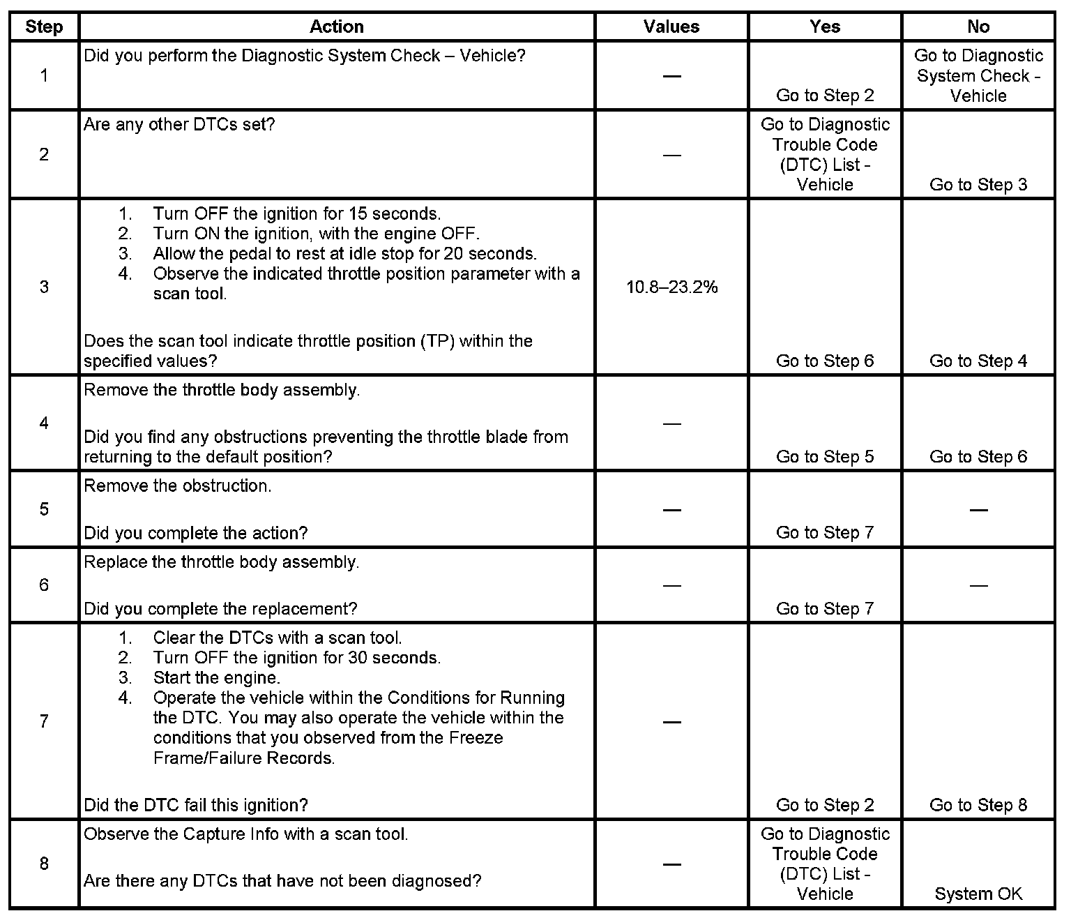 8. More than one throttle actuator control (TAC) system related DTC may set. This is due to the many redundant tests run continuously on this system. Locating and repairing one individual condition may correct more than one DTC. Keep this in mind when reviewing captured DTC info.