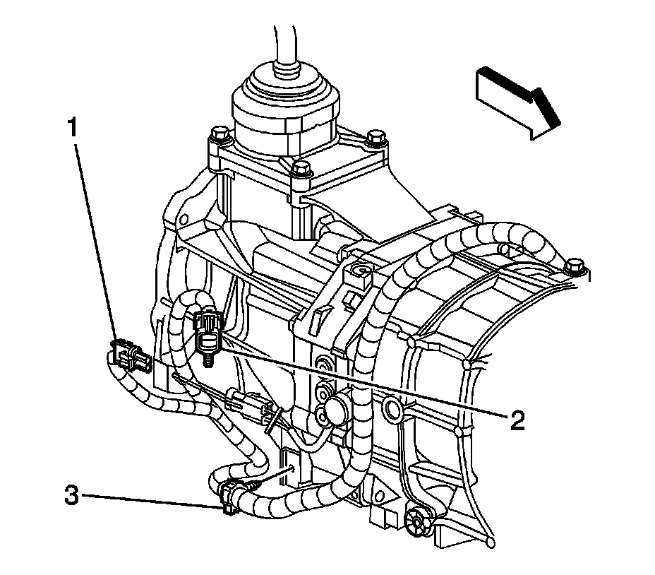 2. Disconnect the backup lamp switch electrical connector (1) at the pigtail.