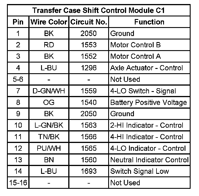 Transfer Case Shift Control Module C1:
