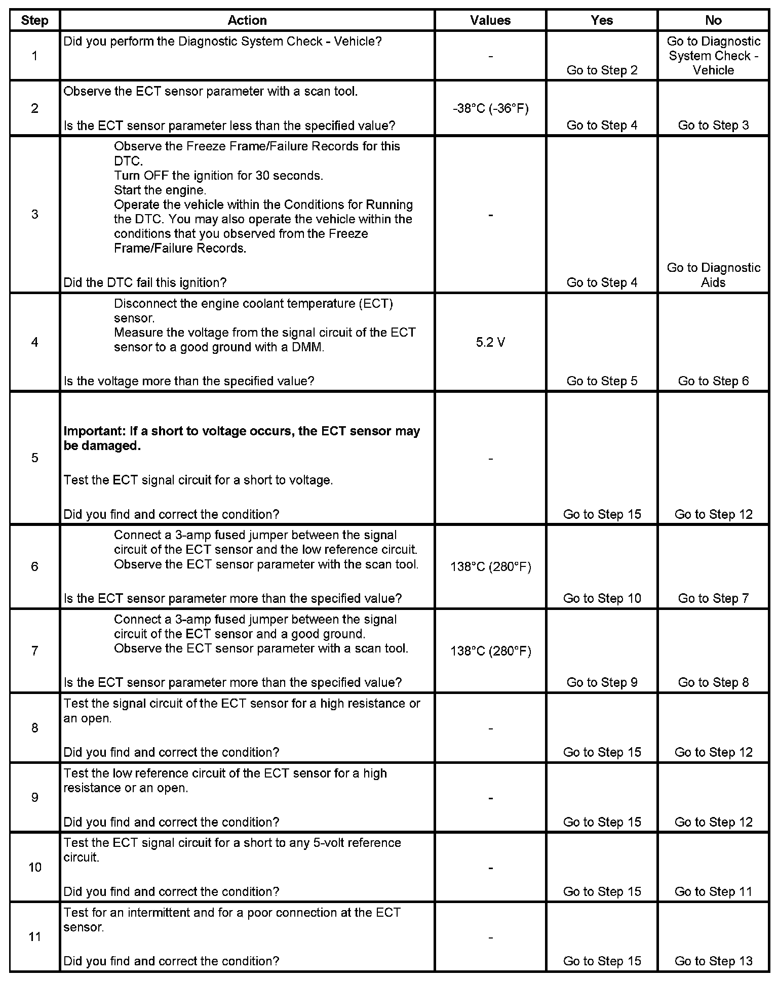 * Use the Temperature vs. Resistance table in order to test the ECT sensor. A skewed sensor could result in poor driveability conditions. Refer to Temperature Versus Resistance.