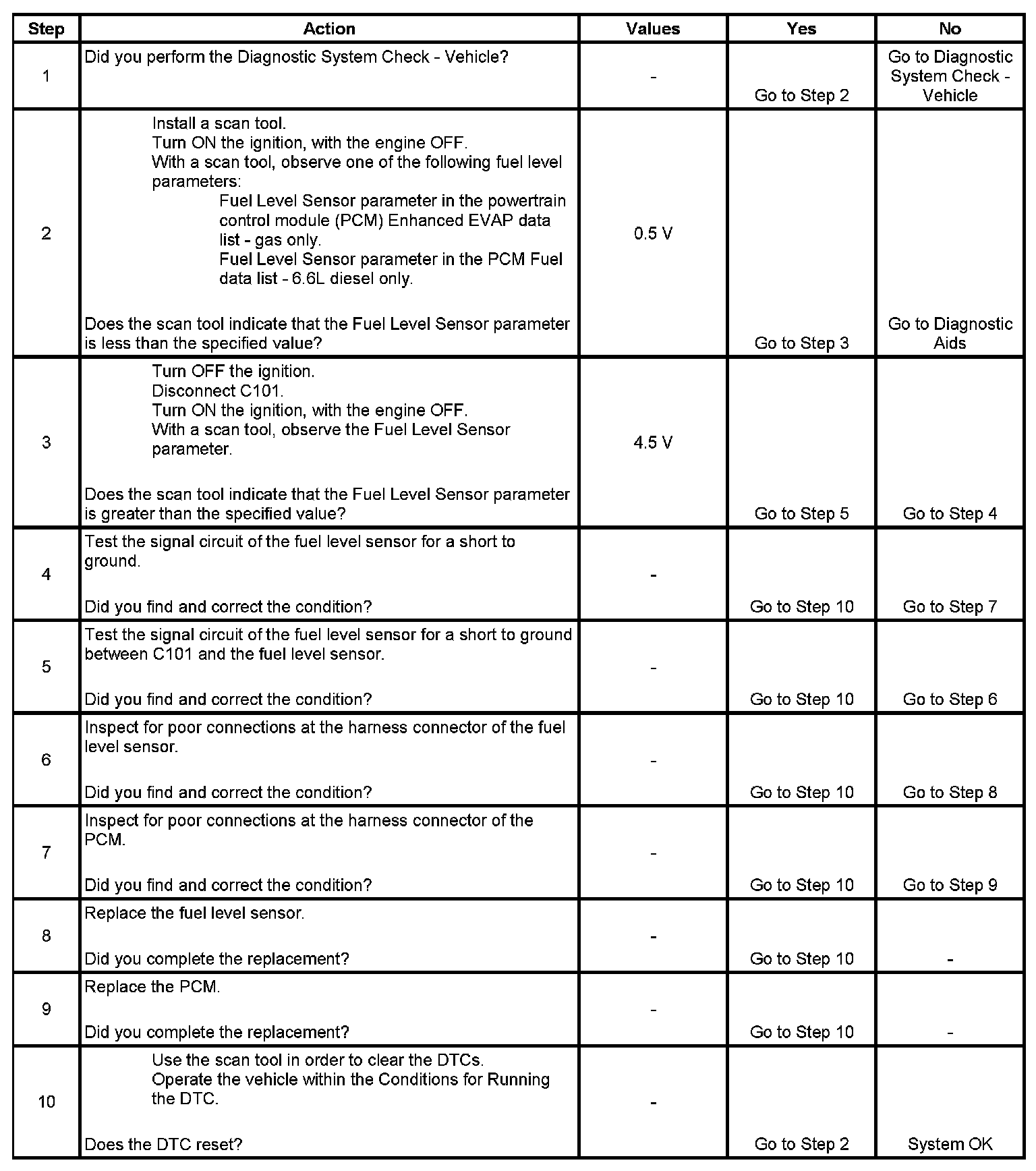 DTC P0462 Fuel Level Sensor 1 Circuit Low Voltage