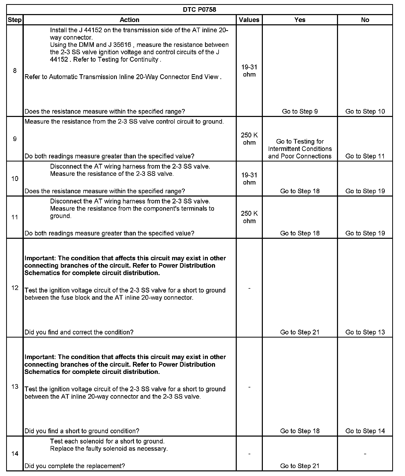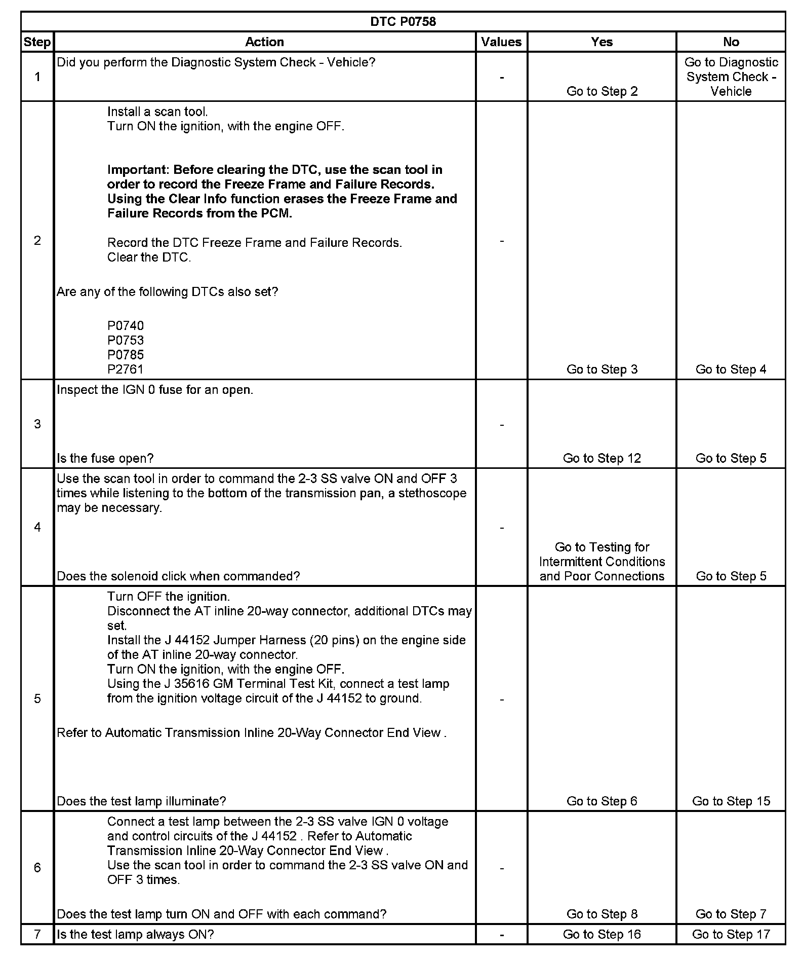 * The PCM stores DTC P0758 in PCM history.