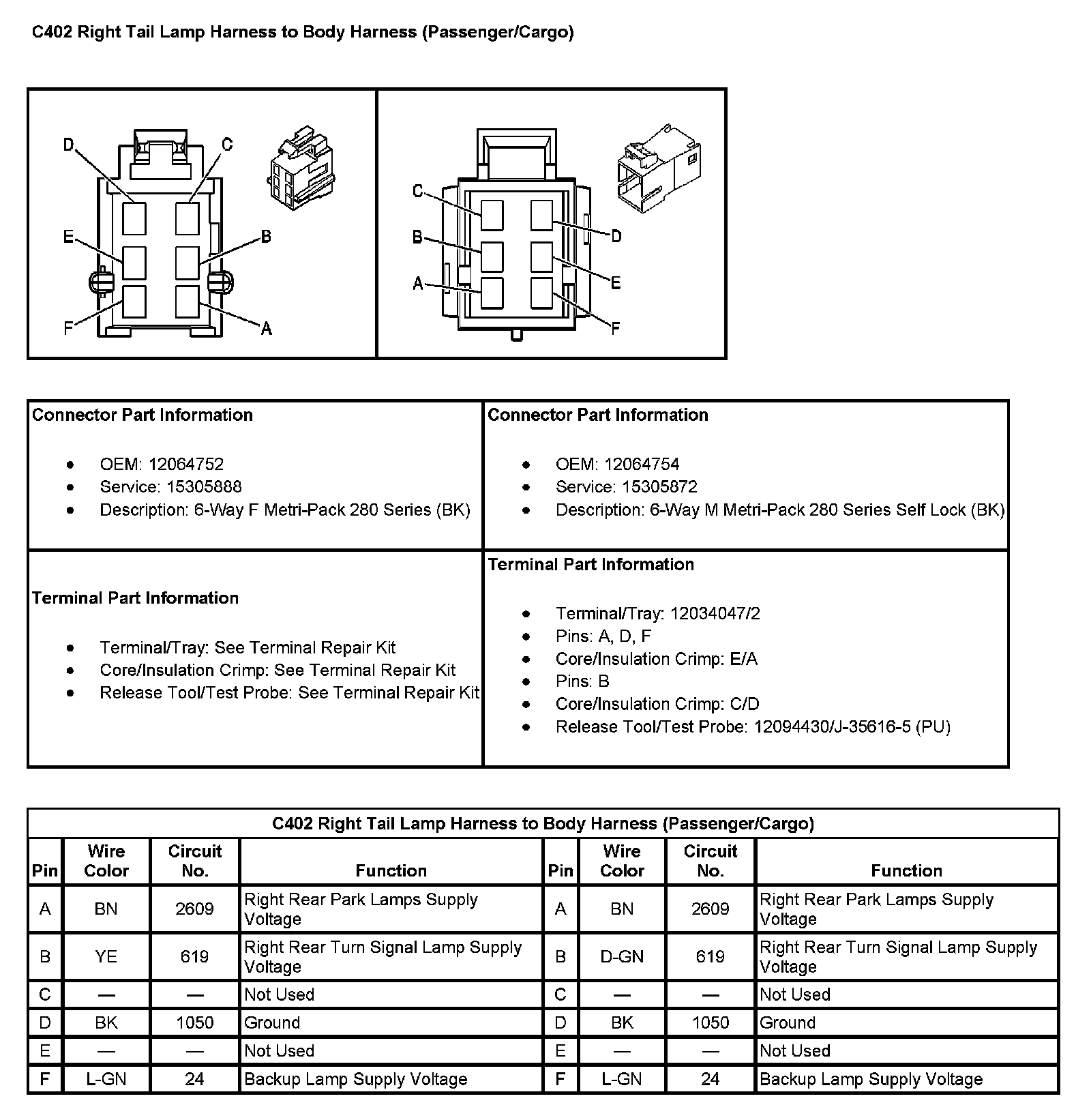 C402 Right Tail Lamp Harness To Body Harness (Passenger/Cargo):