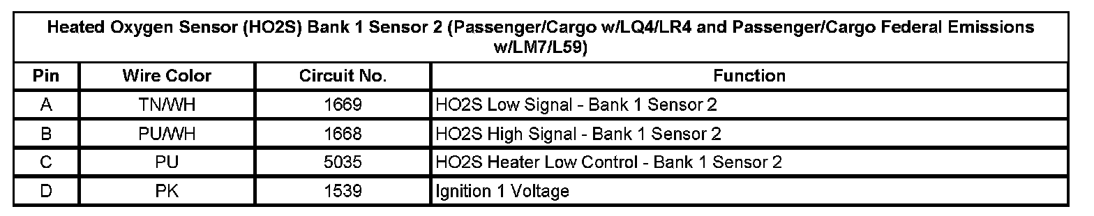 Heated Oxygen Sensor (HO2S) Bank 1 Sensor 2 (Passenger/Cargo w/LQ4/LR4 and Passenger/Cargo Federal Emissions w/LM7/L59)