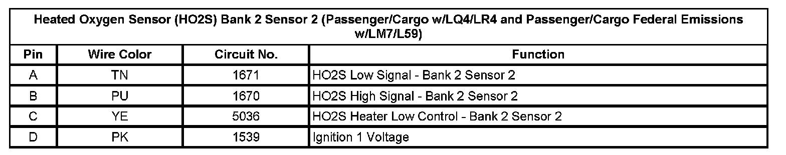Heated Oxygen Sensor (HO2S) Bank 2 Sensor 2 (Passenger/Cargo w/LQ4/LR4 and Passenger/Cargo Federal Emissions w/LM7/L59)