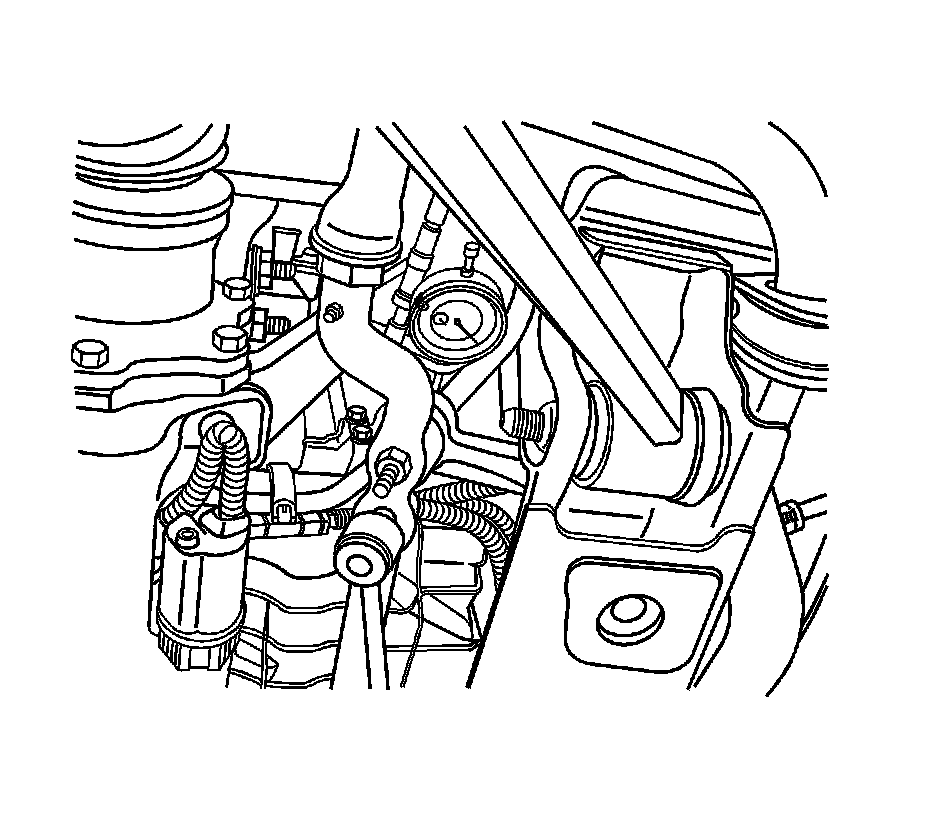 3. Install the dial indicator J 45101 between the idler arm and vehicle frame.
