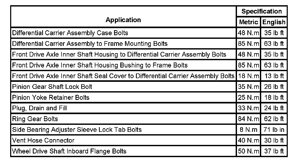 Fastener Tightening Specifications:
