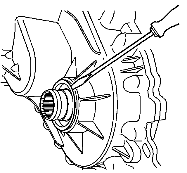 12. Remove the rear output shaft seal by prying out with a flat-blade screwdriver.