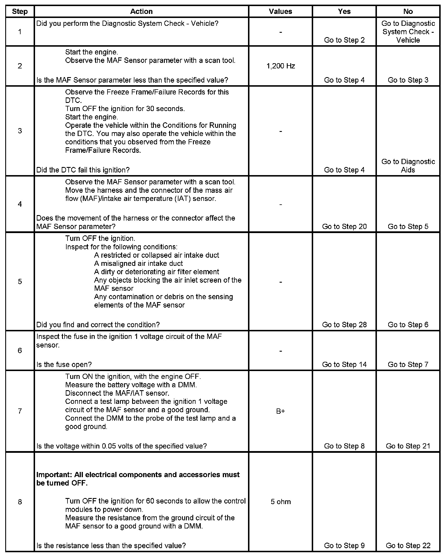 10. This step tests the signal circuit of the MAF sensor for a short to another 5-volt reference circuit.