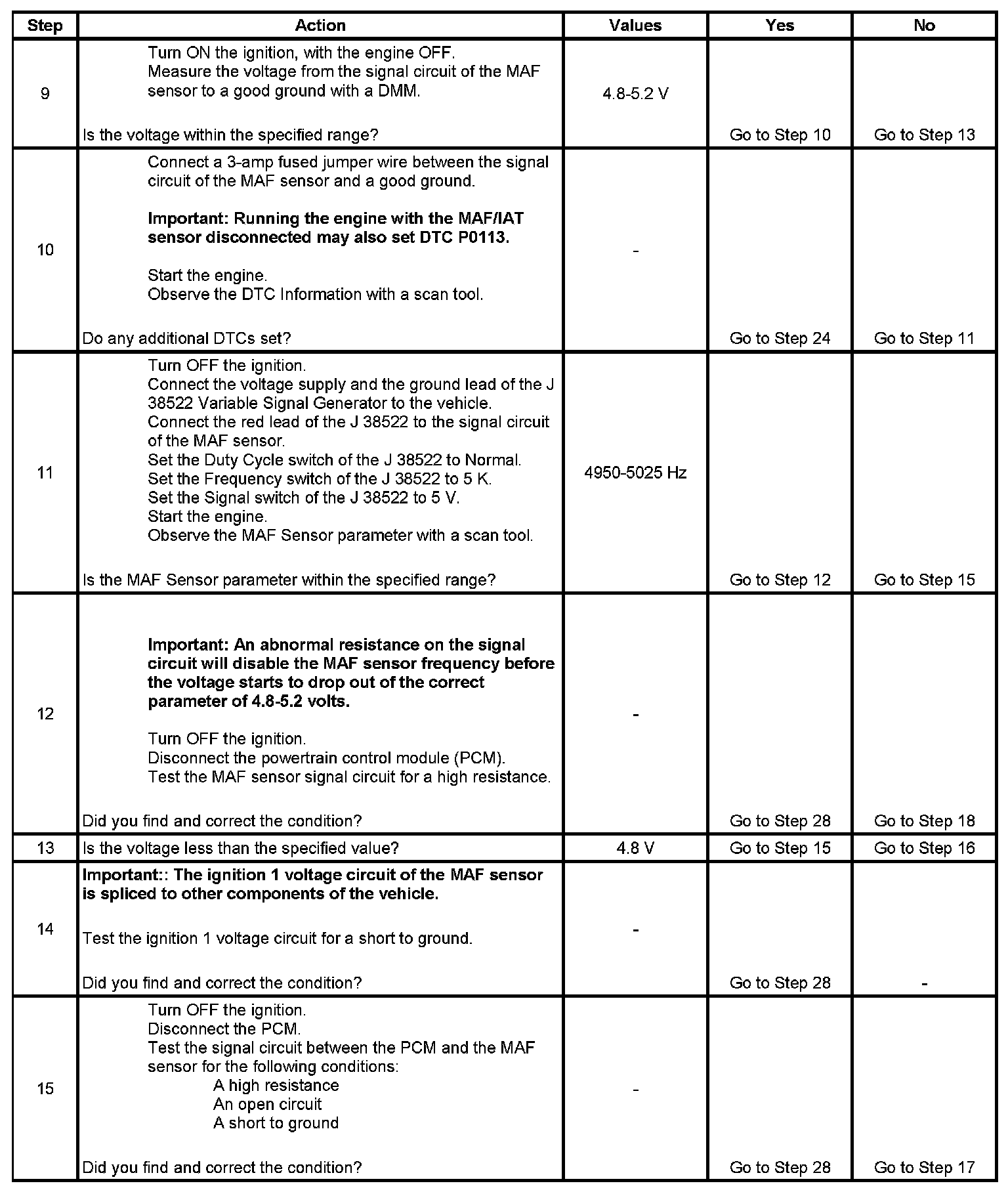 11. This step will determine if the PCM is able to process the frequency signal that it receives from the MAF sensor.