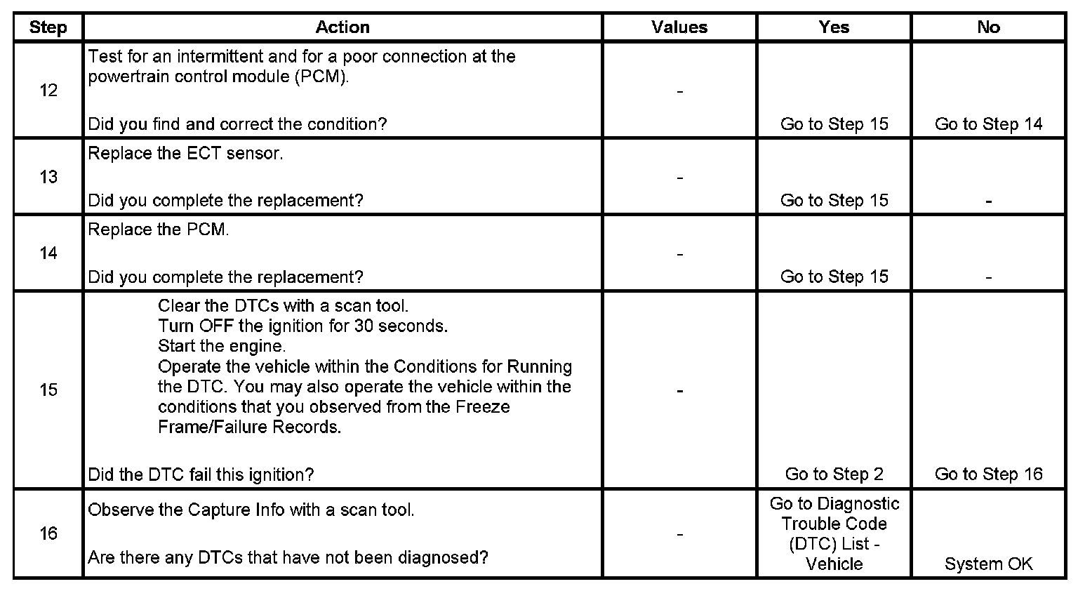 * A current DTC, Last Test Failed, clears when the diagnostic runs and passes.