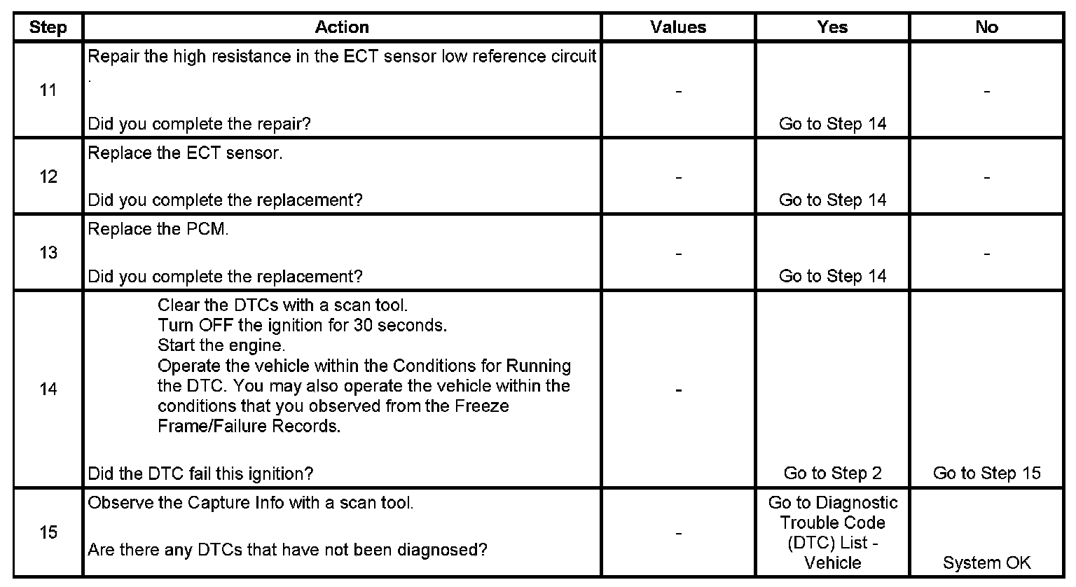 * A current DTC, Last Test Failed, clears when the diagnostic runs and passes.