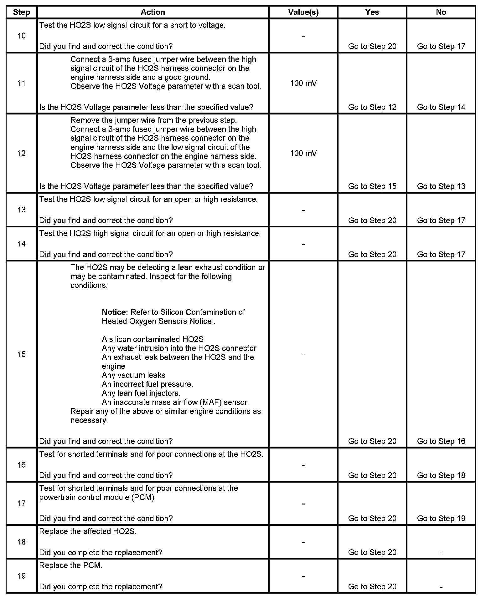 2. If the voltage does not change more than the specified value, the condition is present.