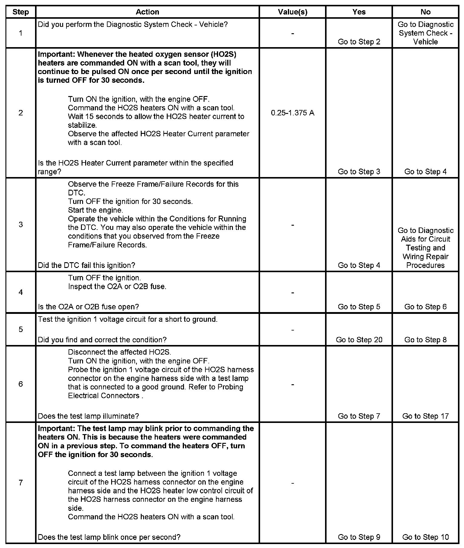 * The PCM detects that the affected HO2S Heater Current parameter is more than 1.375 amps or less than 0.25 amps.