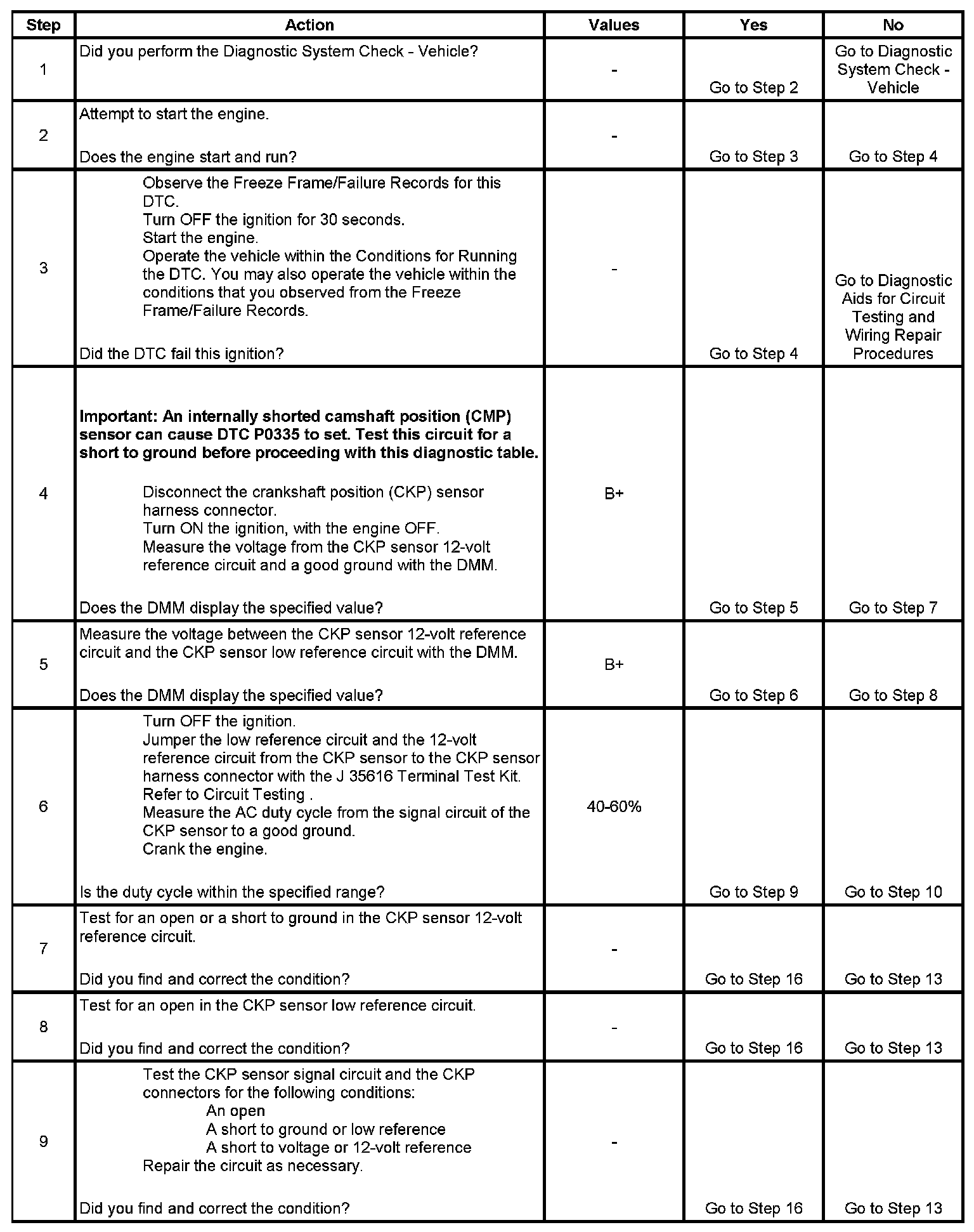 DTC P0335 Crankshaft Position (CKP) Sensor Circuit