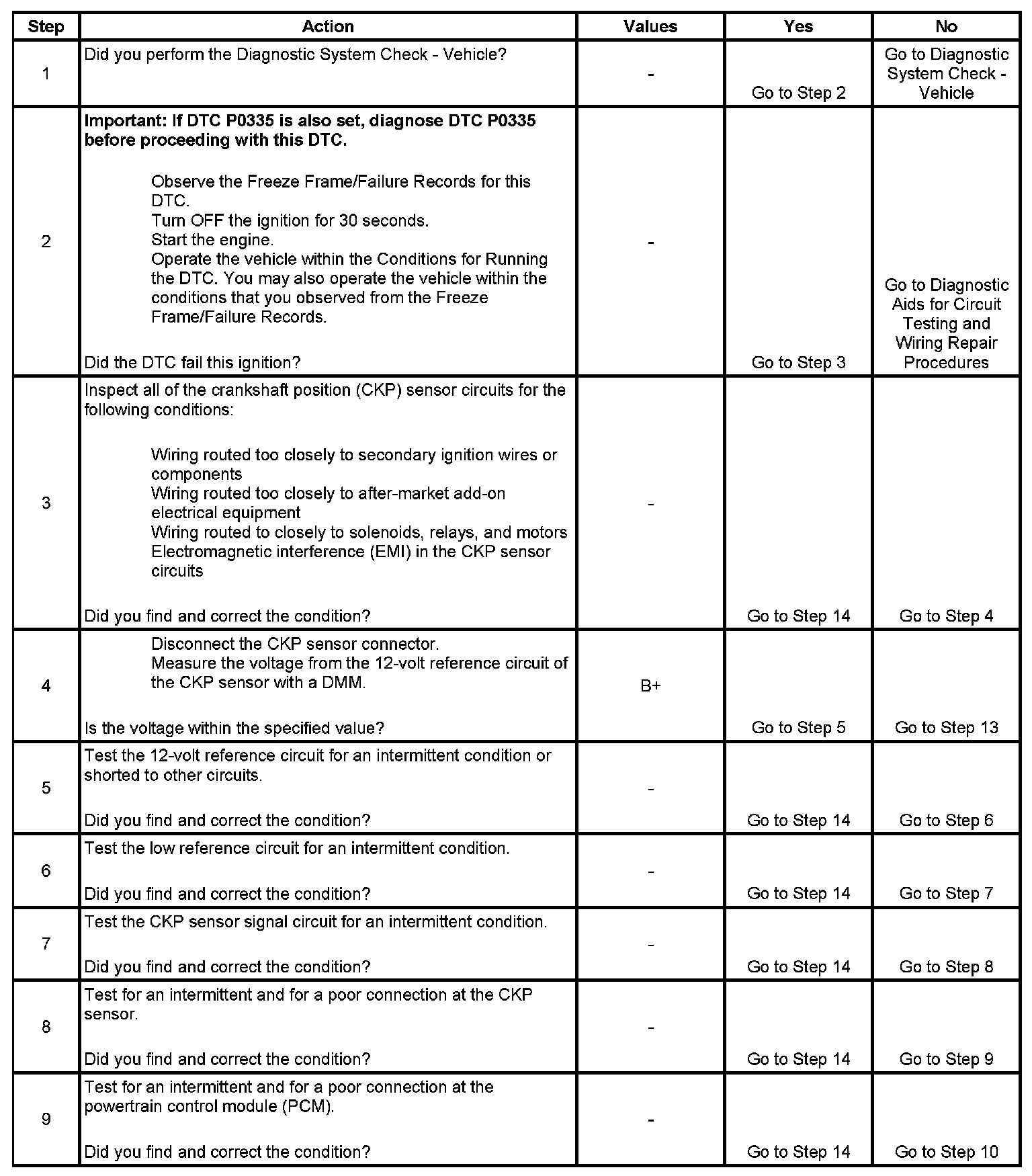 If the PCM detects that the CKP sensor signal is incorrect for 3 seconds, DTC P0336 sets.