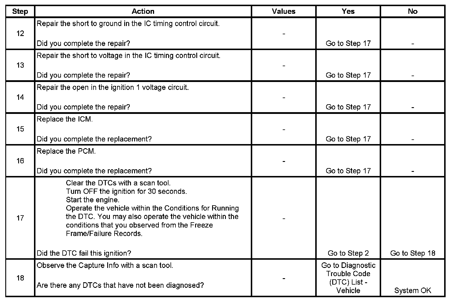 The numbers below refer to the step numbers on the diagnostic table.