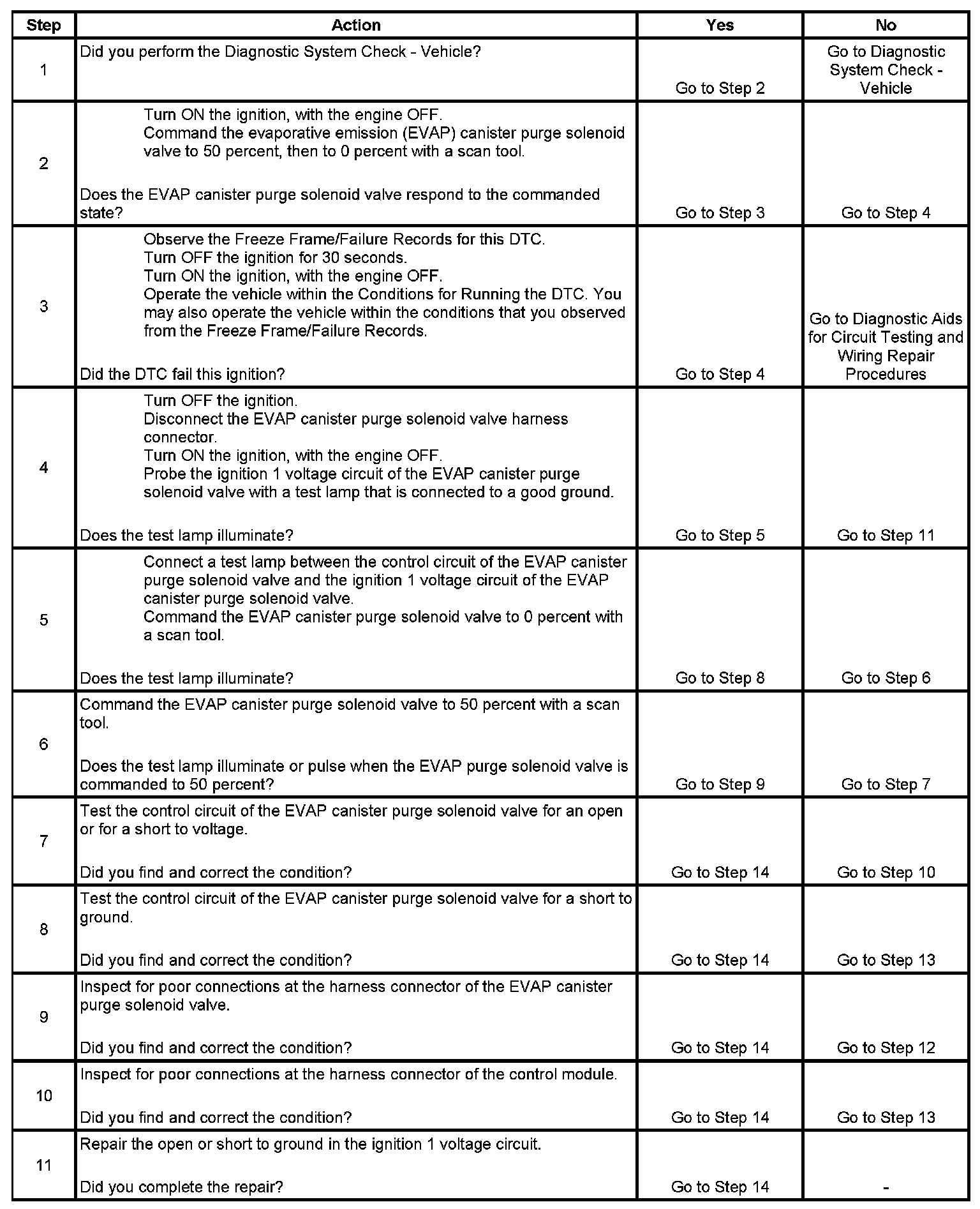 6. This step tests if a ground is constantly being applied to the EVAP canister purge solenoid valve.