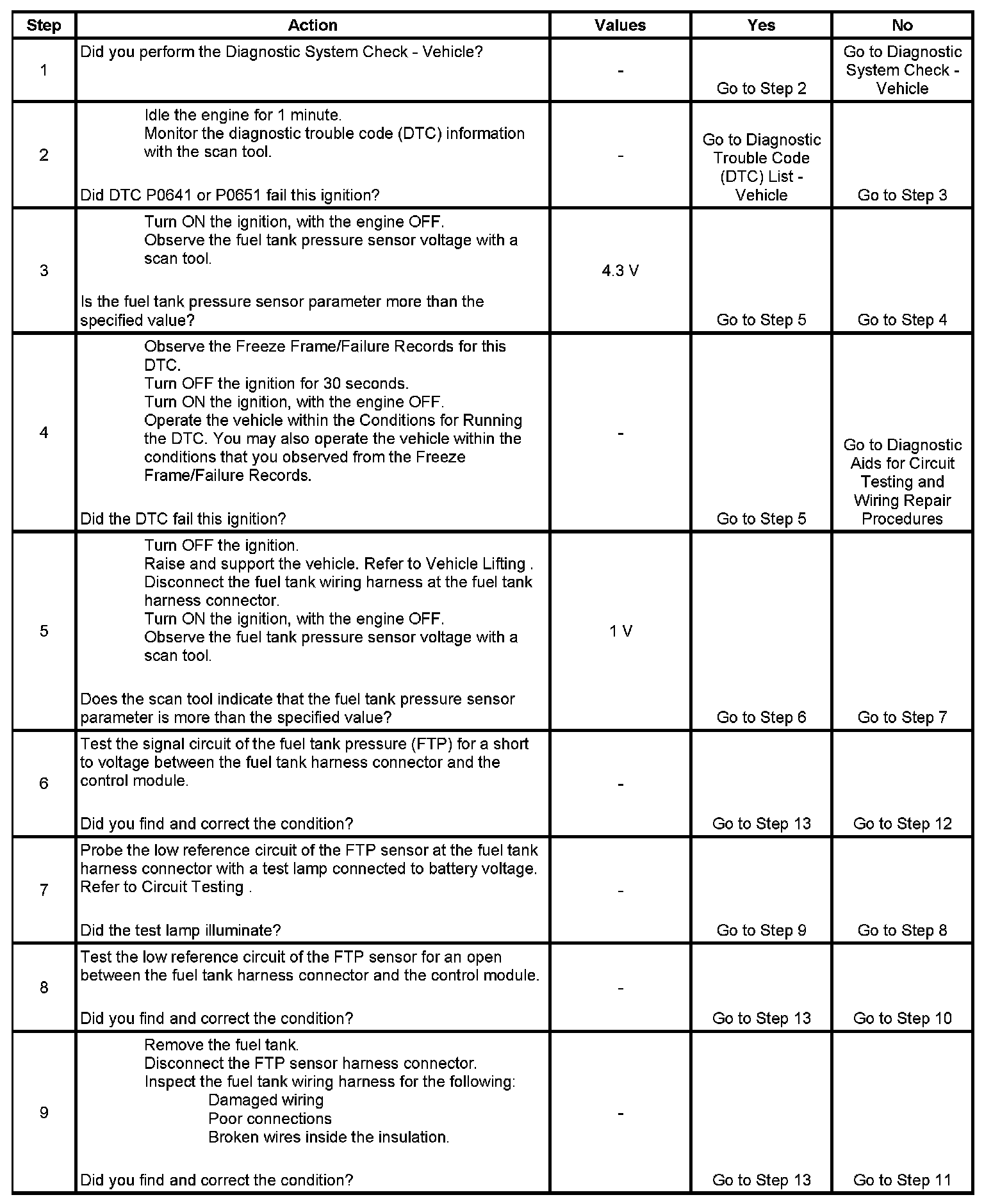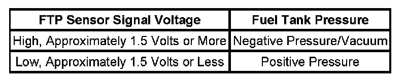 The following table illustrates the relationship between FTP sensor signal voltage and the EVAP system pressure/vacuum.