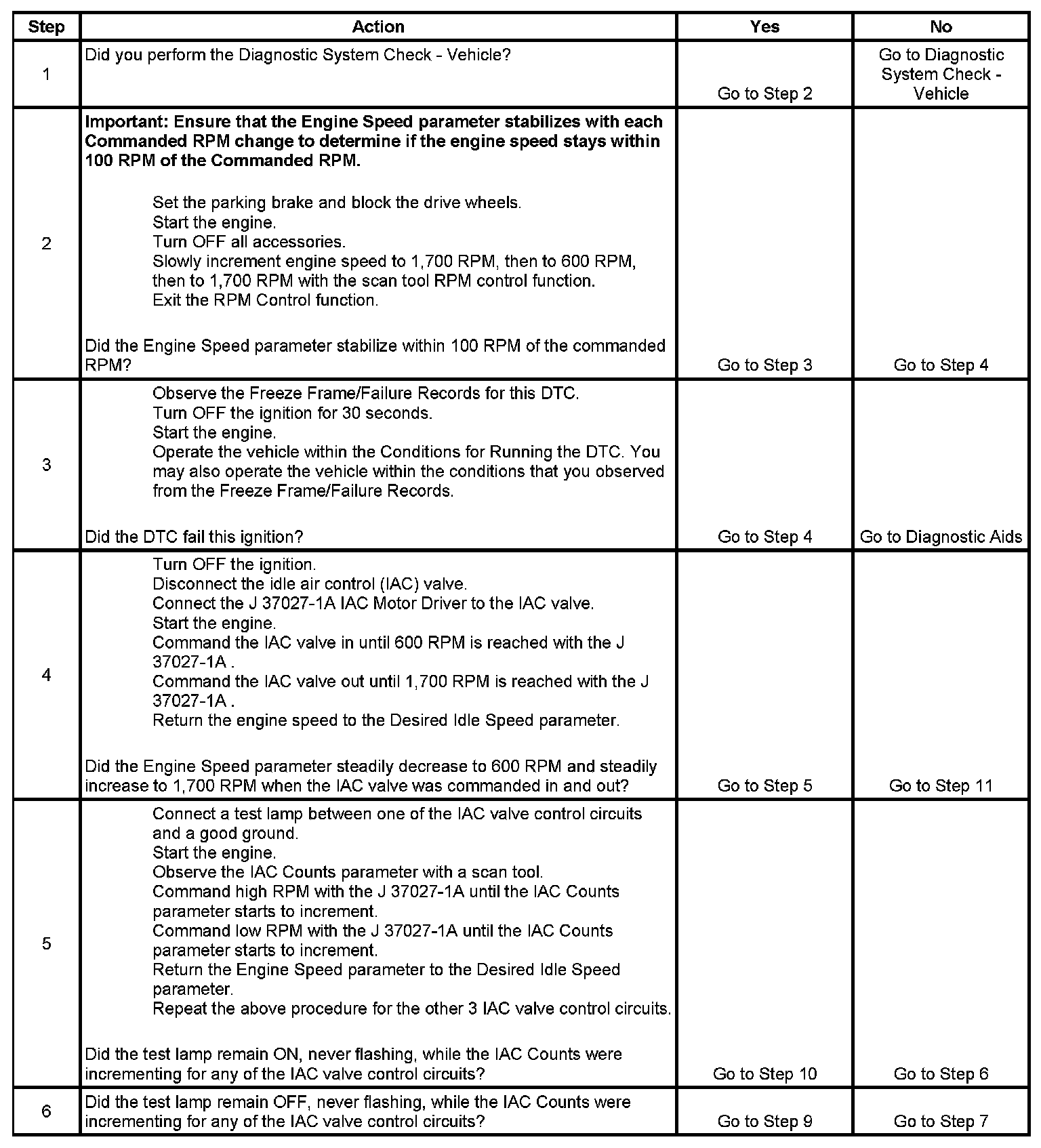 5. This test will determine the ability of the PCM and the IAC valve control circuits to control the IAC valve.