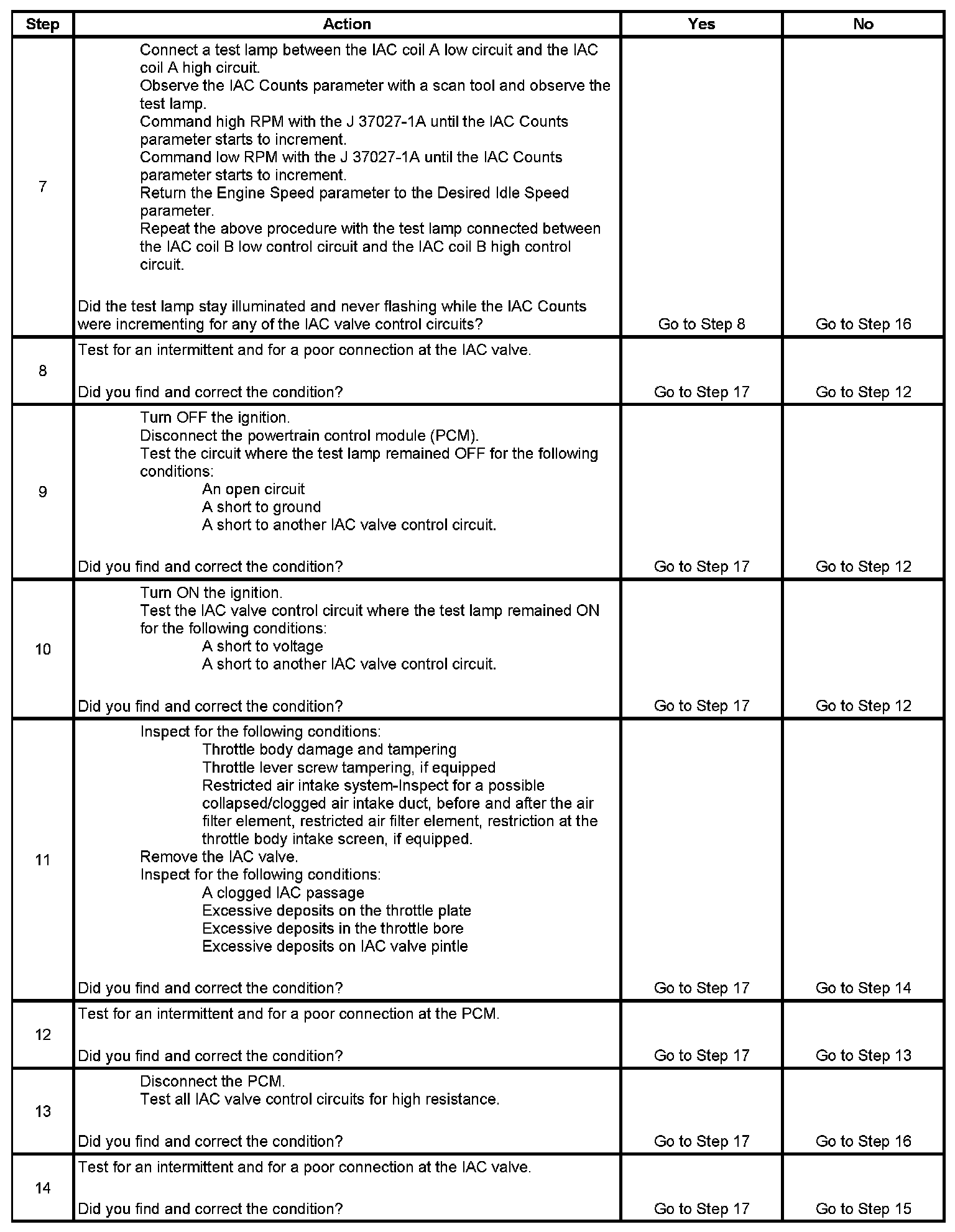 7. This test will determine the ability of the PCM to provide the IAC valve control circuits with a ground. On a normal operating system, the test lamp should not flash while the IAC Counts are incrementing.