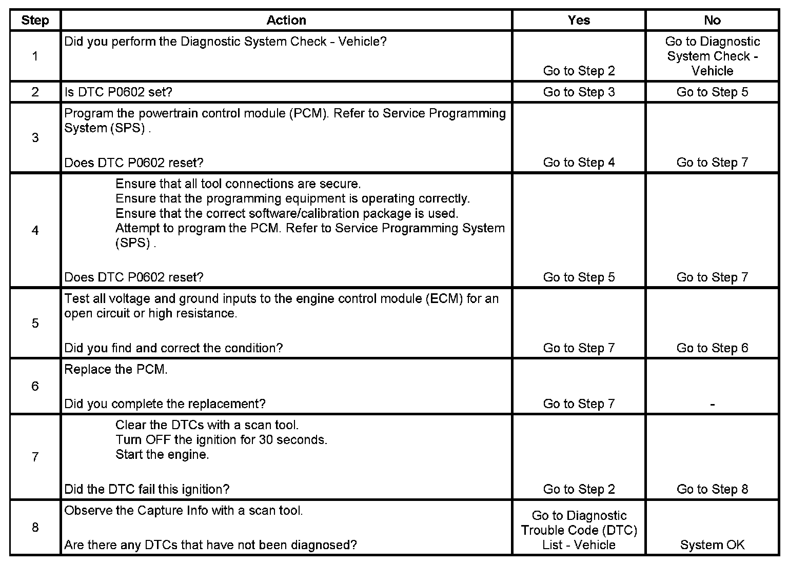 2. A DTC P0602 indicates that the PCM is not programmed.