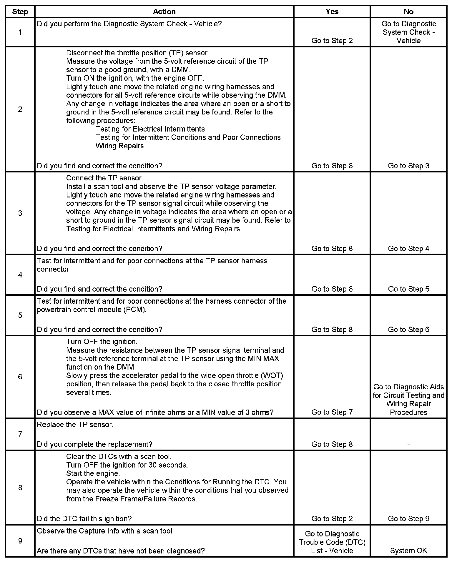 6. This test will determine an intermittent faulty TP sensor utilizing the MIN MAX, 100-millisecond capture mode on the DMM.