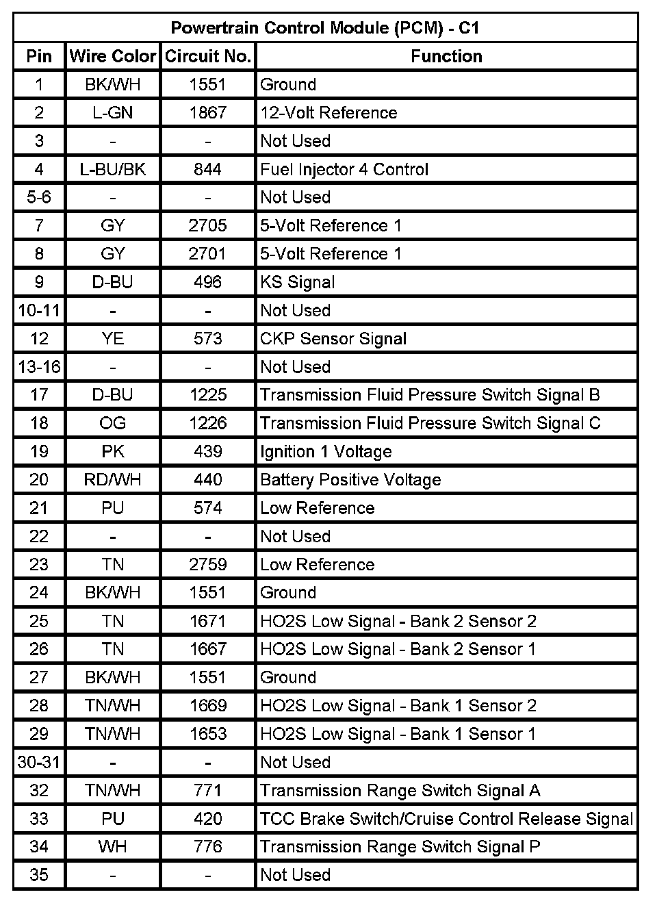 Powertrain Control Module (PCM) - C1 (Pin 1 To 35):