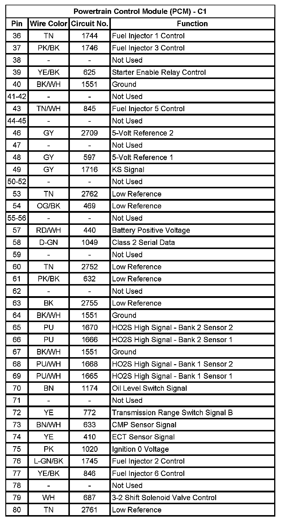 Powertrain Control Module (PCM) - C1 (Pin 36 To 80):