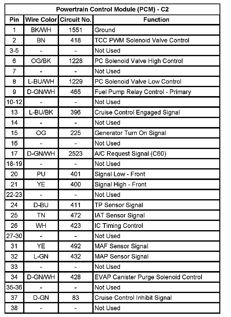 Powertrain Control Module (PCM) - C2 (Pin 1 To 38):