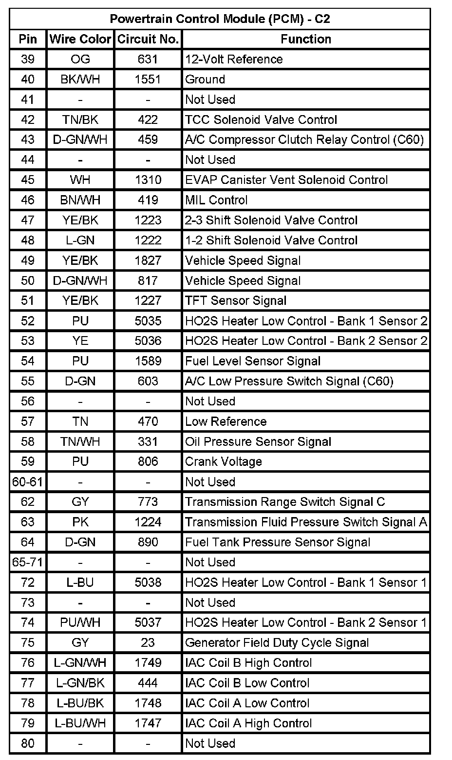 Powertrain Control Module (PCM) - C2 (Pin 39 To 80):
