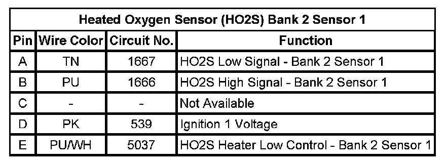 Heated Oxygen Sensor (HO2S) Bank 2 Sensor 1